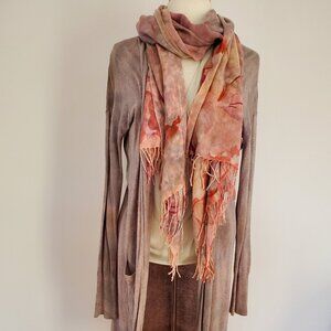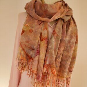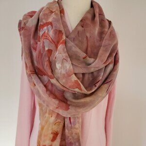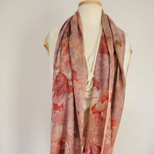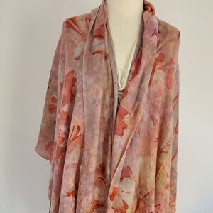 NEW XL merino wool oversized scarf wrap flower painted red pink blue brown gray