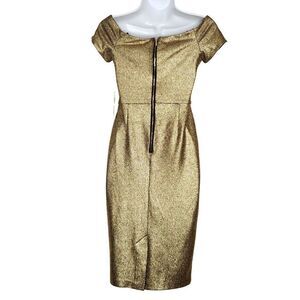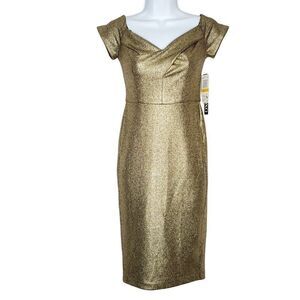 NEW XOXO Bodycon Dress V Neck Cap Sleeve S Gold Metallic Black Party Cocktail