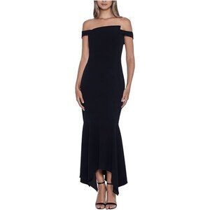 NEW XSCAPE Off Shoulder Asymmetrical Gown in Black Sz. 6