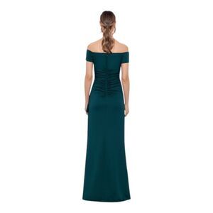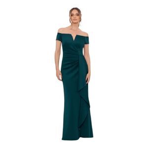 NEW XSCAPE Small* Hunter Green Long Gown Off Shoulder Ruched Ruffle USA Made