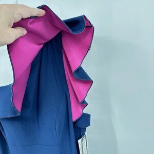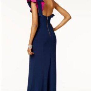 NEW XSCAPE one shoulder dress gown maxi formal ruffle evening party blue pink 12