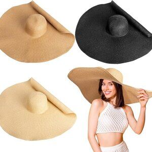 NEW XXL Boho Summer Woven Straw Oversized Sun Hat Bohemian Vibe Beach Resort Hat