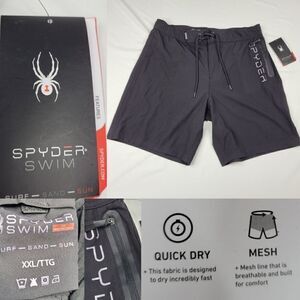 NEW XXL SPYDER SWIM BLACK BOARD SURF SWIMMING TRUNKS SHORTS pockets 34 35 36 NWT