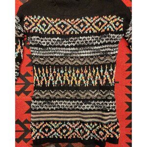NEW Xhilaration L/G Black Knit Sweater With Multicolor Geometric Pattern
