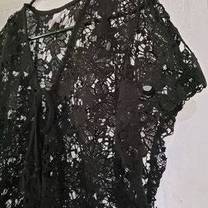 Xhilaration Tie Front Black Lace Swim Cover Up