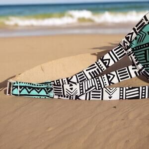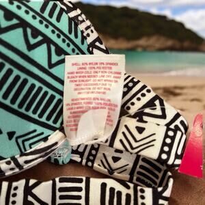 New with tags Xhilaration Swimsuit Bikini Top rendered in a Seafoam Green, Black, and White Tribal Print. Molded Push Up Cups and three strap back closure. Nylon and Spandex. Size XS.