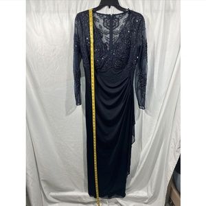NEW Xscape [ 12 ] V Neck Long Sleeve Lace Embroidered Mesh Gown Navy