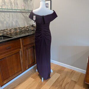 NEW Xscape Solid Side Ruched High Slit Off Shoulder Maxi Long Formal Gown Size 8