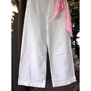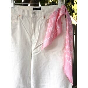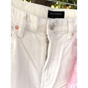 New with tags — Step into Y2K vibes with these Juicy Couture wide-leg corduroy pants in white. Featuring a high-rise fit, cropped wide leg, and classic 5-pocket design, these pants bring back that iconic Juicy aesthetic. Finished with a silver logo button, copper rivet details, and an attached pink Juicy Couture logo scarf for a playful touch.