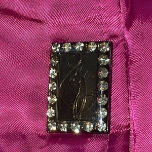 NEW WITH TAGS. Quilted puffer is fashioned by a front rhinestone embellished snap button placket leading to a zip closure. Details include ribbed collar, slash pockets and contrast interior lining with a hidden compartment. Signature logo pendant at center back neck. * Machine wash cold * Made in Indonesia *