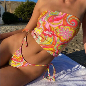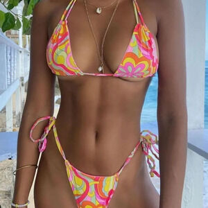 NEW! Y2K Retro Floral Paisley Side String Ruched Triangle Bikini Bottoms