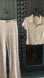Oatmeal colored ribbed pants and short sleeved front zip collared sweater set. Perfect for any occasion, this set offers both comfort and elegance. Sweater zips both from the top and the bottom to give it that perfect 90s/ Y2K chic look and flare pants have slits at the ankles for an extra trendy appeal