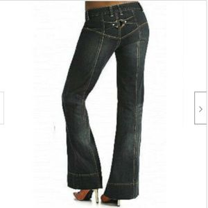 NEW Y2k 90's Rocawear Western Buckle Seam GRAY-BLUE Wide Leg Flare Stretch Jean 9