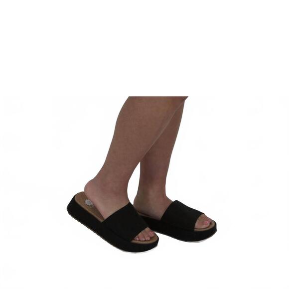 Meet the Anatto Platform Slide by YELLOWBOX, an ideal choice for stylish summer strolls. These slides feature a one-band upper crafted from canvas, metallic, and floral eyelet fabric, accented by a flared sandal bottom. They are equipped with a Signature Yellow Box High Rebound EVA ultra-padded footbed, ensuring comfort with every step. The design is completed with a 2-inch platform heel wrapped in trendy jute and cork. Perfect for travel and streetwear occasions.