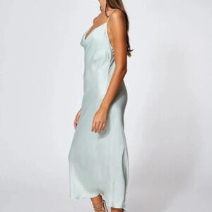 NEW YFB Cowl Neck Silky Slip Midi Dress Water
