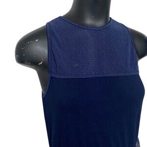 NEW Young Fabulous and Broke Fabric and Net Body-con Shift Dress in Navy Blue Size Large. Back zipper closure, sleeveless
