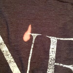 Sleeveless tee shirt. Bleach mark on the "N". Looks like part of the shirt!! Lol