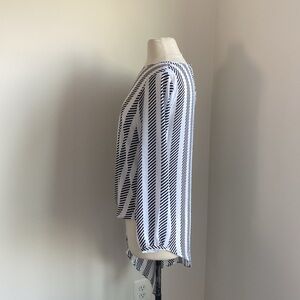 NEW YORK AND COMPANY Top Womens Sz Small Black White Stripe Asymmetrical Tie