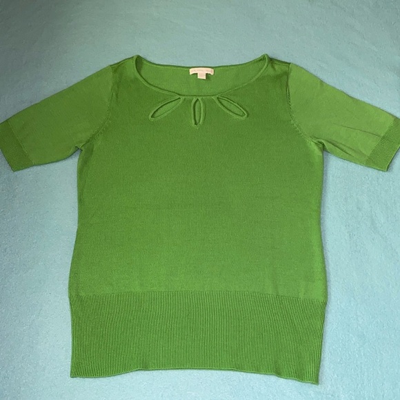 NEW YORK AND COMPANY knit sweater petal cutout short sleeve green stretch size M