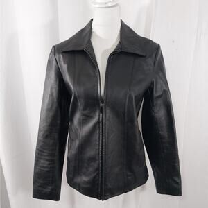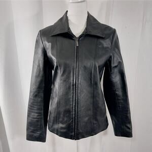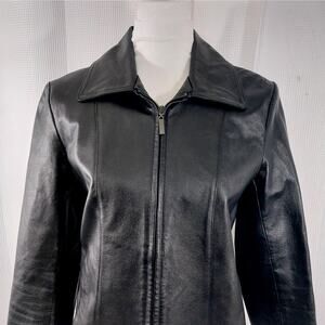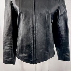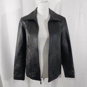 NEW YORK & CO.! BLACK GENUINE LEATHER STREAMLINED & SLEEK JACKET, COAT! SZ S