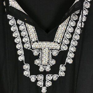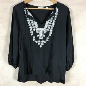 NEW YORK & CO Black Embroidered Boho Top SMALL