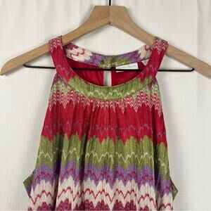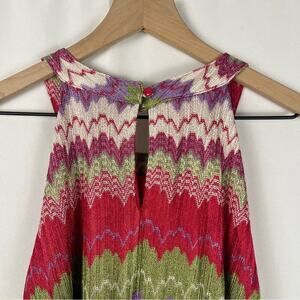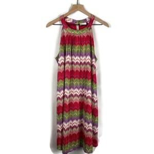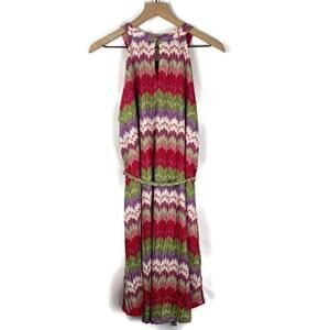 NEW YORK & CO Knit Zigzag Multicolor Lined Tank Dress With Belt Pink Size Large