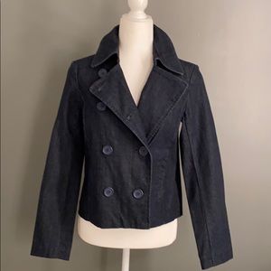 NY & CO - SZ S - DARK DENIM - double breasted jacket – pea coat style. Dress up or wear casual.