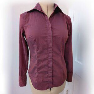 y2k new york and company burgundy red stretch button up long sleeved work shirt