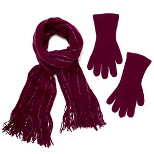 These cozy pieces every collection needs this season! This 2-piece set features an embellished cable knit scarf and gloves to match. Give it as a gift or style for yourself. 100% Acrylic. Hand Wash Cold. Imported.