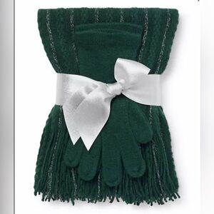 NEW YORK & COMPANY 2-PIECE CABLE KNIT SCARF & GLOVES - GREEN (NEW WITH TAGS)