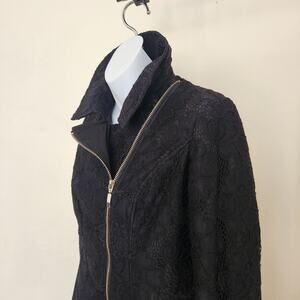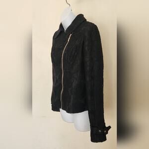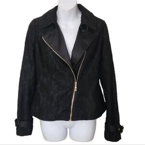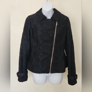 NEW YORK & COMPANY Black Lace Zipper Motorcycle Style Jacket Size S