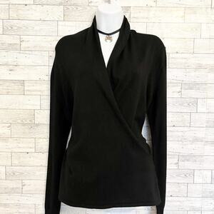 NEW YORK & COMPANY Black Surplice Long Sleeve Top, S