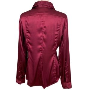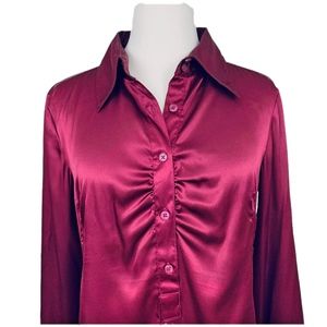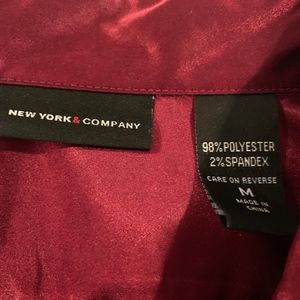 NEW YORK & COMPANY Blouse Shirred Stretch Long Sleeve Wine Medium