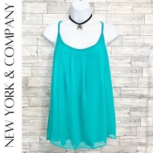 Elevate your wardrobe with this stylish New York & Company Blue-Green Tank Top with Chiffon Overlay in size M. Wear it alone or layer it for endless styling options.