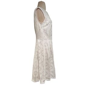 NEW YORK & COMPANY Dress Midi White Lace Overlay Medallion Lined Size 8