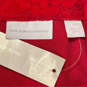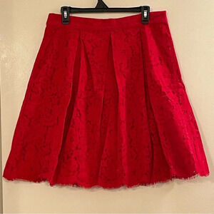 NEW YORK & COMPANY Lace Floral Midi Skirt in Bright Red