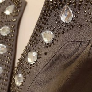 NEW YORK & COMPANY Sheath Dress Gray Jeweled Beaded Neckline Linen Blend Large