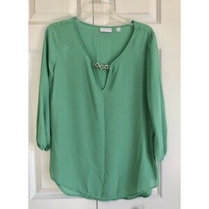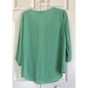 NEW YORK & COMPANY WOMEN'S BLOUSE SIZE M GREEN, V NECK, 3/4 SLEEVES 1