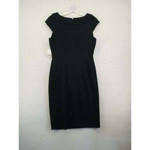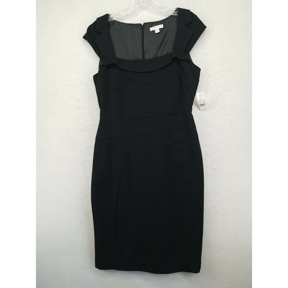 NEW YORK & COMPANY WOMENS DRESS BLACK 6 CAP SLEEVE SQUARE NECK LINED FITTED