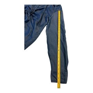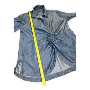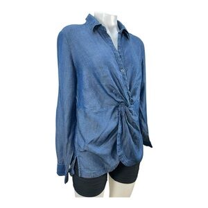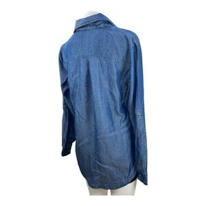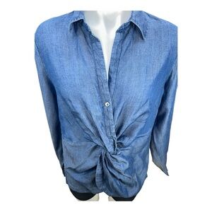 NEW YORK & COMPANY soho Blue Denim Button Knot Front Roll Tab Sleeve Shirt Sz M