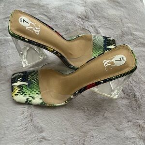 NEW YORK & COMPANY Heather Multi Color Clear Block Heel Mules Size 7 NWOB