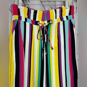 NEW YORK & COMPANY Stripe Multicolor High Waisted Wide Leg Pants 6