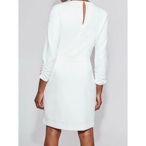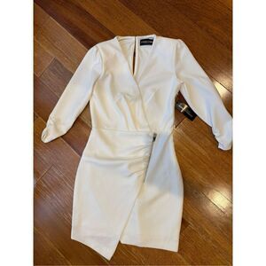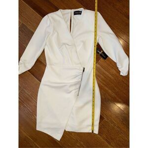 NEW YORK & COMPANY White Asymmetrical Wrap Dress with Ruched 3/4 Sleeve Design S