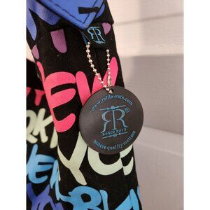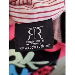 This Robin Ruth Canvas Hobo Tote is the perfect accessory for any stylish traveler or casual user. With a magnetic snap closure and adjustable strap, this medium-sized tote is made of durable black canvas fabric with a colorful logo pattern and red striped lining. The exterior features a bag charm, making it a versatile and practical choice for any occasion.