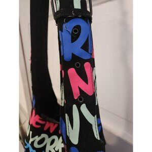 NEW YORK ROBIN RUTH CANVAS HOBO TOTE. ADJUSTABLE STRAP SNAP CLOSURE LOGO CHAIN