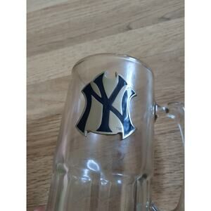 NEW YORK YANKEES LOGO OFFICIAL MAJOR LEAGUE BASEBALL JUMBO BEER MUG heavy glass.