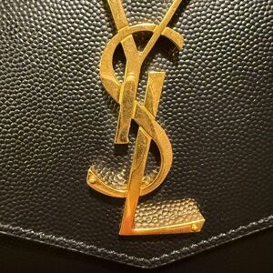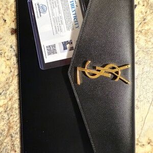NEW YSL Black Leather Clutch w/ after production chain