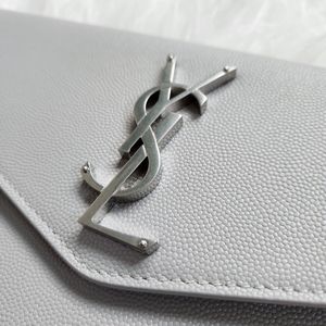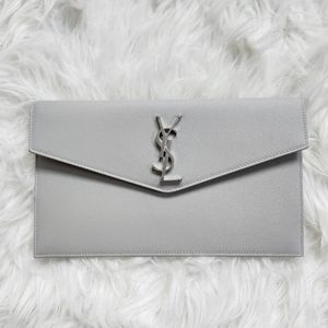 NEW YSL Saint Laurent Uptown Monogram Clutch in Granite Grey