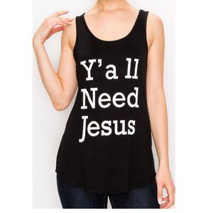 NEW Y'all Need Jesus Graphic Tank Top in Black
