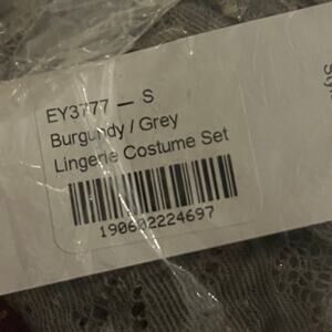 Cast a bewitching spell in this exclusive Brave Magical Student Fantasy lingerie costume featuring a sheer, grey lace crop top with a white collar, a sheer, burgundy high waisted panty with a grey lace trim, a cheeky cut back, removable burgundy and gold suspenders, and a matching striped tie. (Glasses and wand not included.) Grey lace design may vary.